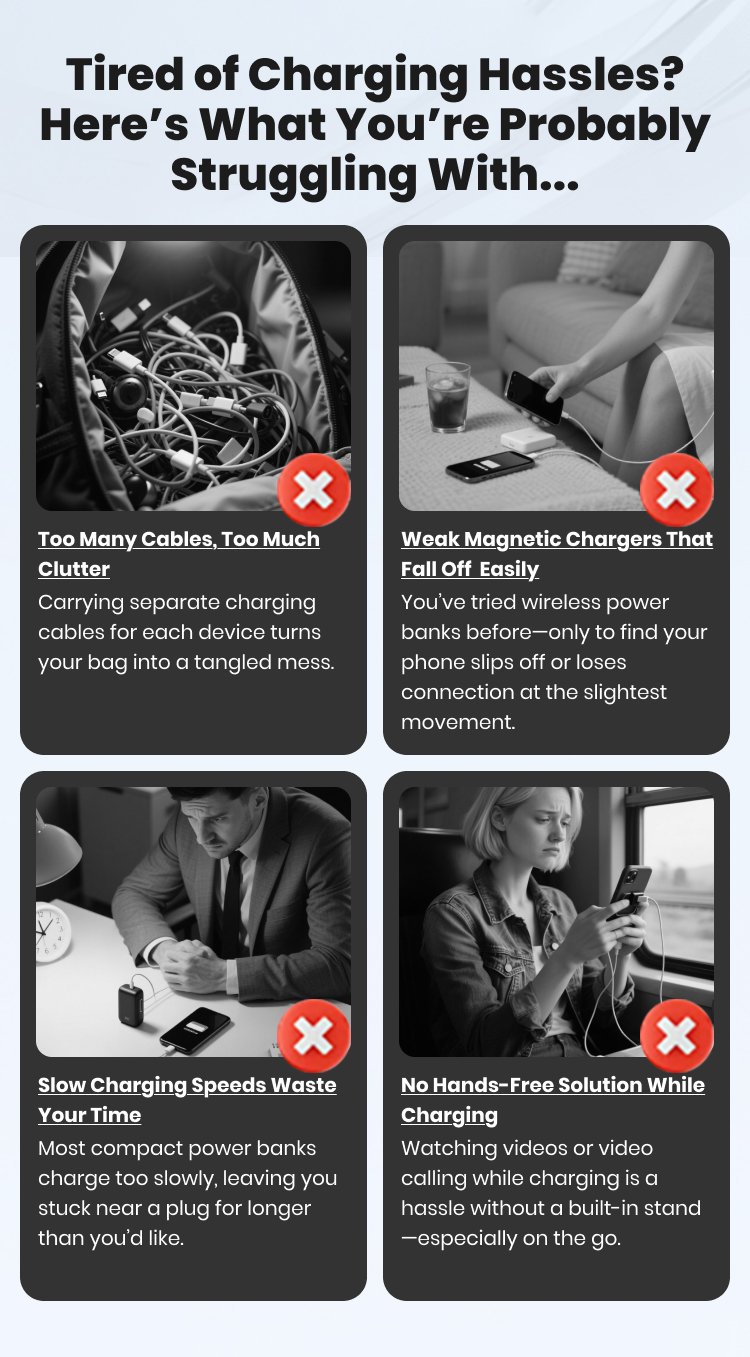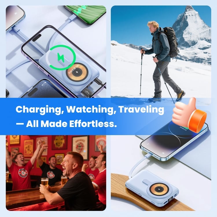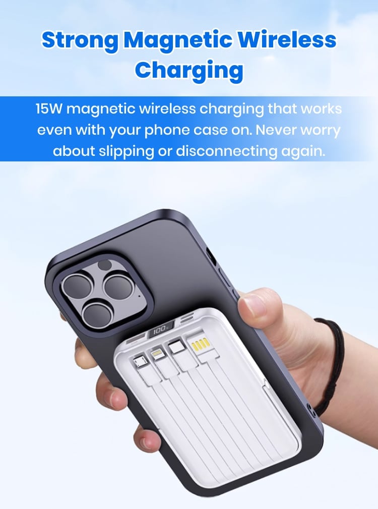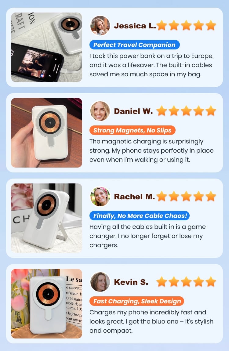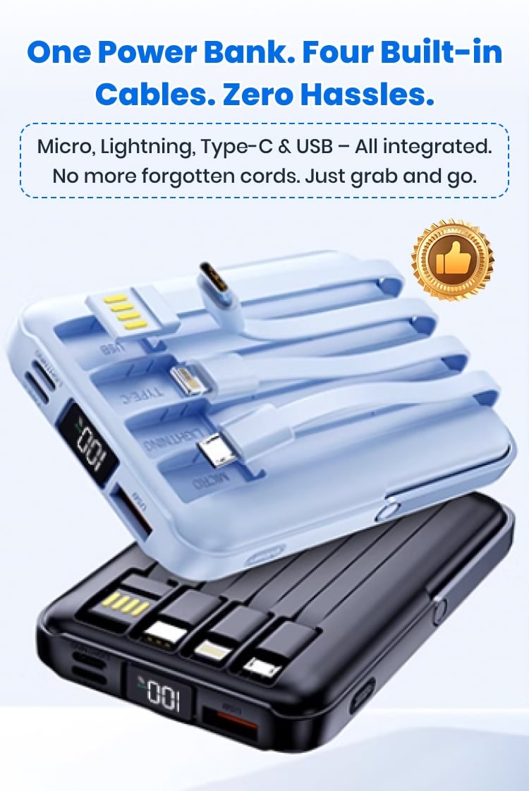 I love how this power bank has built-in cables for every device I own. I no longer have to carry around a pouch full of cords—just this one device does it all. It’s small, sleek, and very efficient.