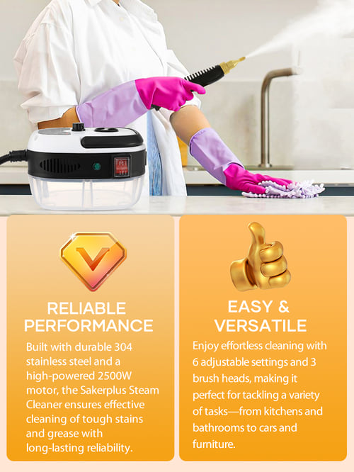 The device heats water to produce steam and releases it under pressure through a nozzle. The heat and pressure help loosen grime, kill germs, and dissolve stubborn residues, making cleaning faster and more hygienic.