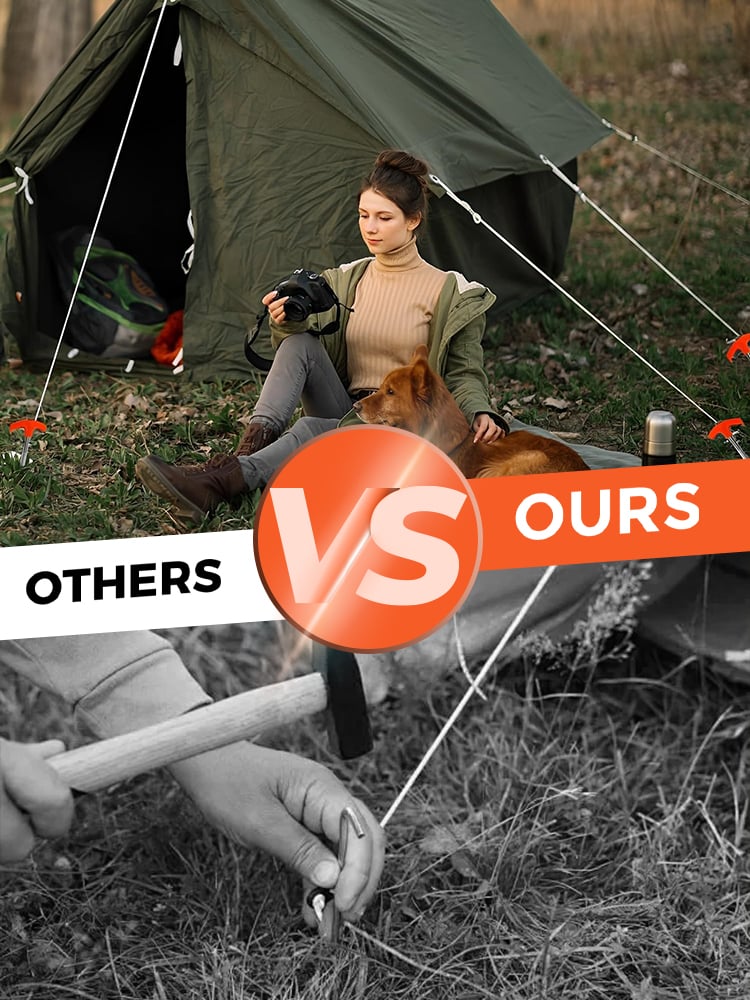 The newly designed tent pegs can anchor the ground more firmly, which greatly improves your efficiency and saves time and effort. It is easy to carry and will not add unnecessary burden to your camping.