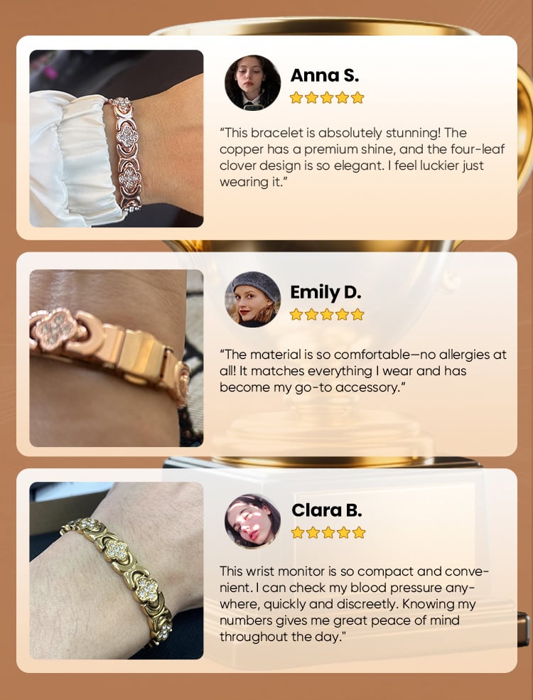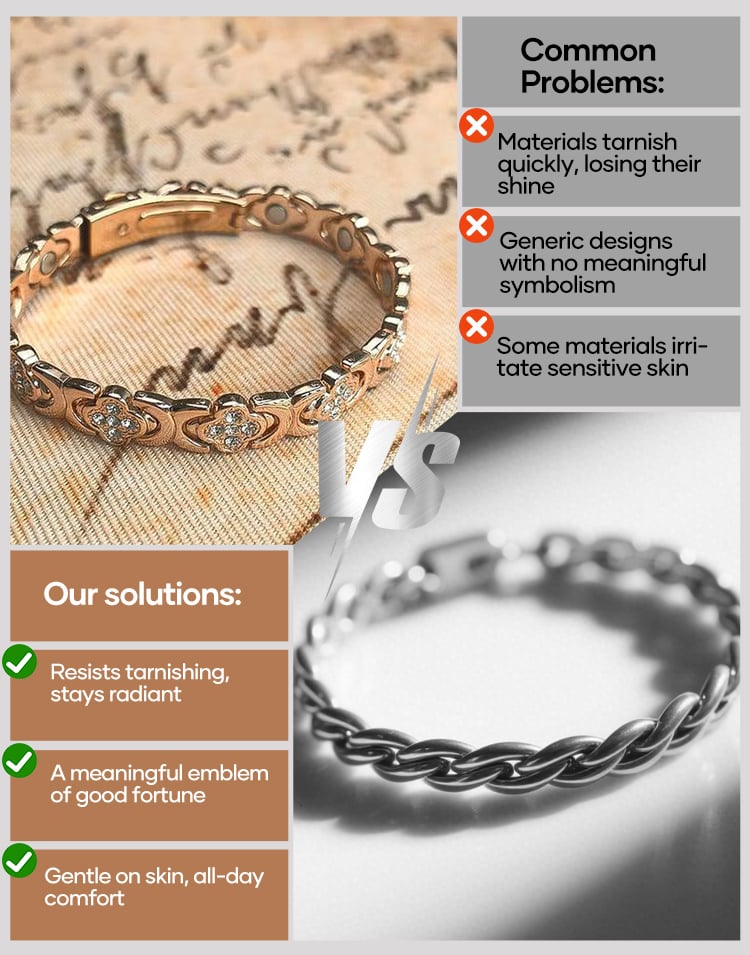 This bracelet is made of high-purity copper, which is low in allergenicity, and most people can wear it without discomfort. However, a very small number of people who are sensitive to metals may experience skin redness. It is recommended to test it before wearing or shorten the wearing time. If you experience discomfort, please stop using it immediately.