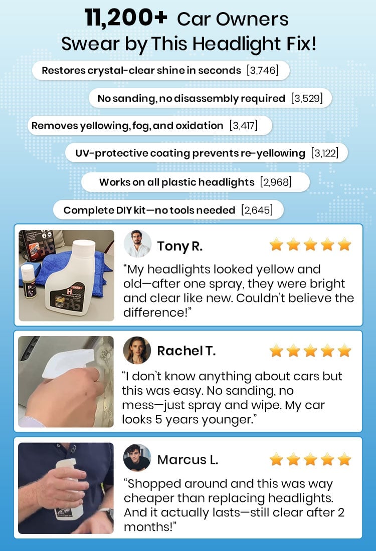“I thought I’d need to replace the whole headlight — this spray made it crystal clear in under a minute. I even used it on my wife's car.”