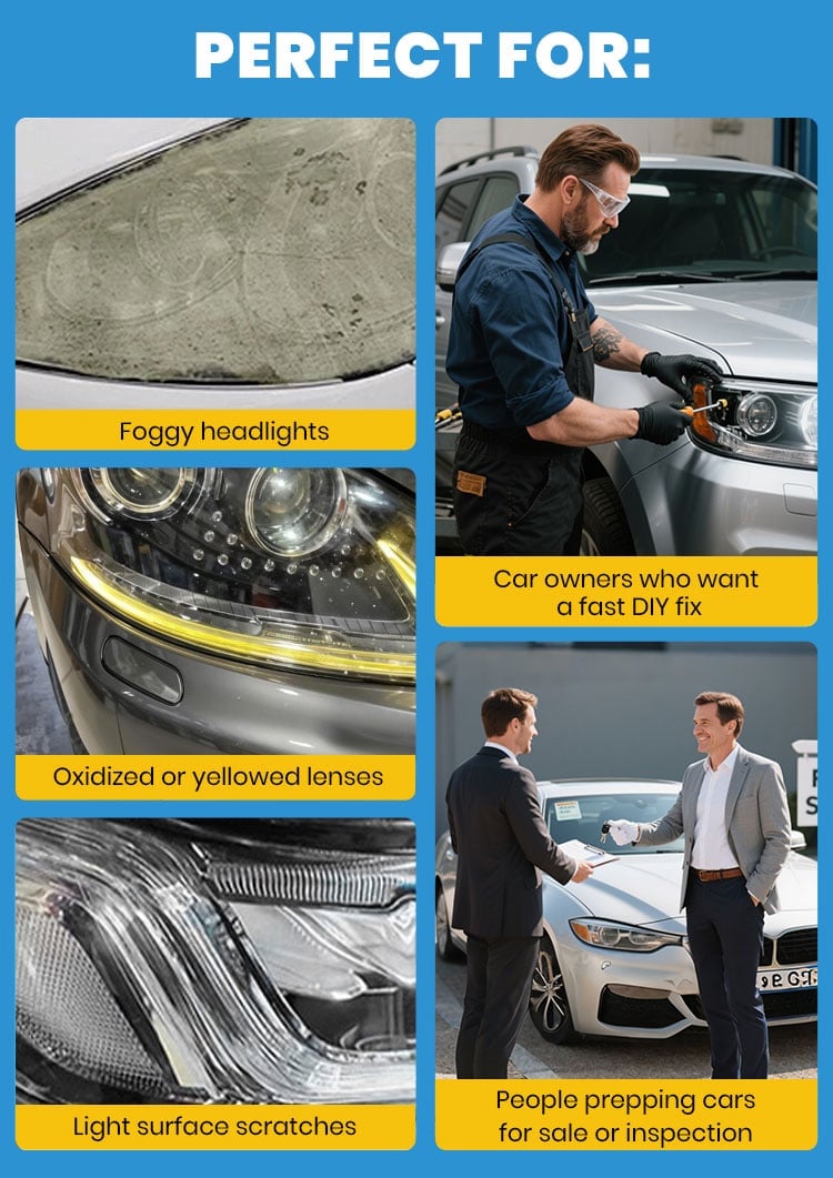 “Was skeptical, but WOW. My lights were yellow and dull, now they look brand new. No sanding, no tools, and I did it in my driveway.”