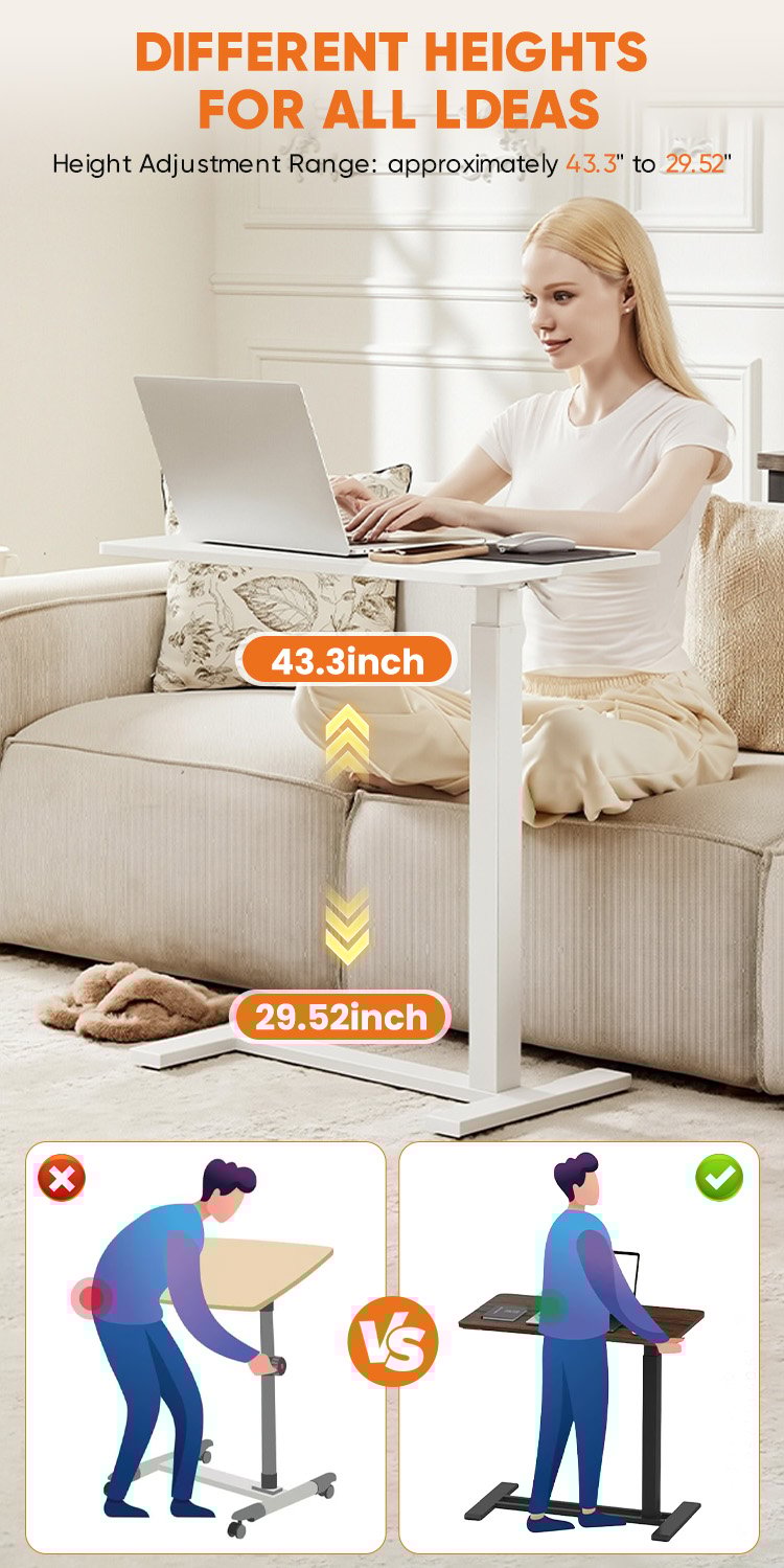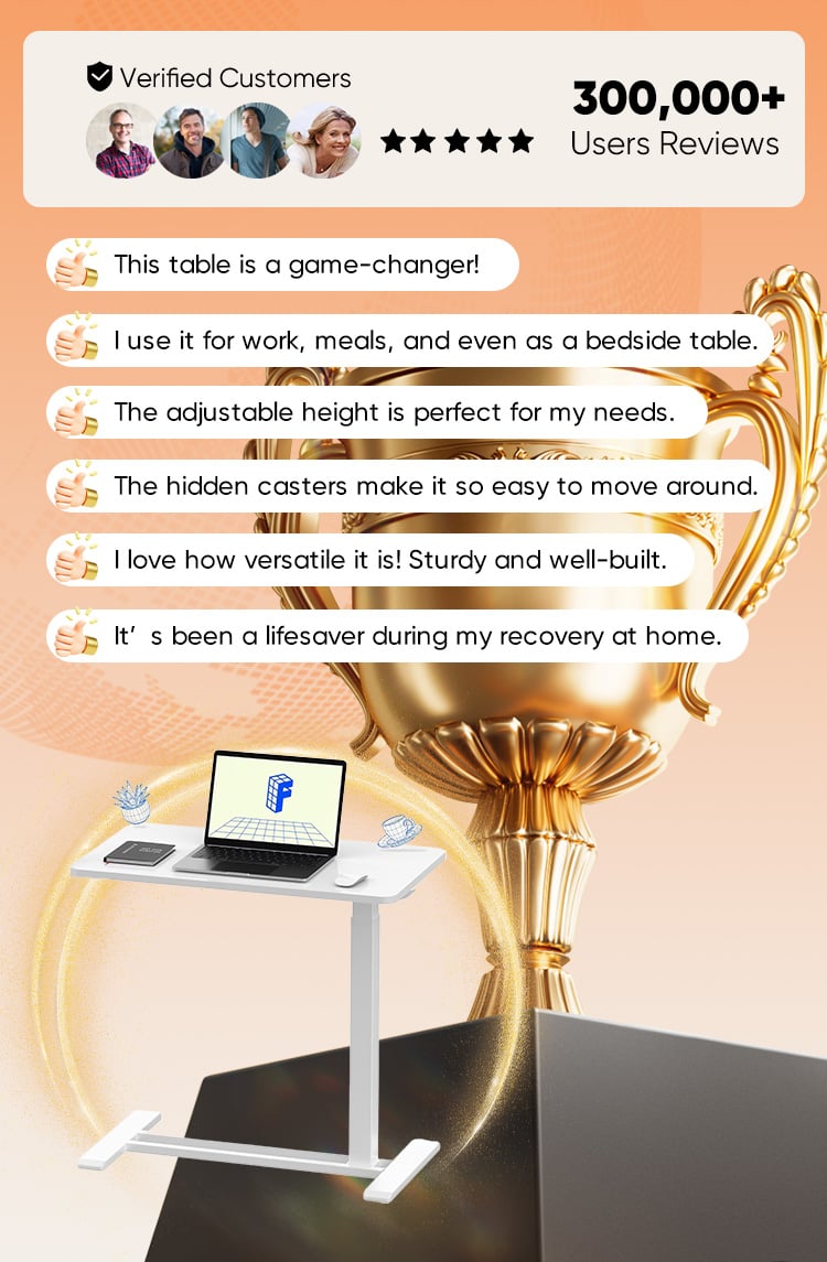 The hidden casters make it super convenient to move around, and the adjustable height is a game changer! I can easily adjust it for comfort whether I'm sitting or lying in bed.