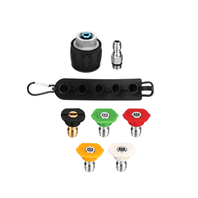 A: The set includes 5 spray nozzles, each designed for different cleaning tasks—from gentle rinsing to high-pressure washing, allowing you to tackle various surfaces effectively.
