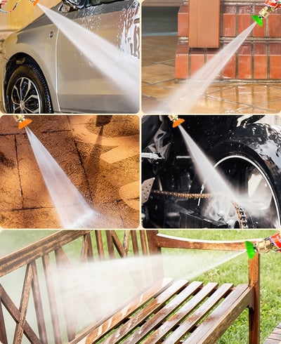 Includes interchangeable nozzles with various spray patterns, perfect for car washing, gardening, patio cleaning, and more.