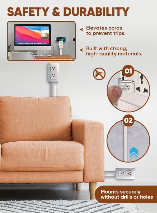 The Electrical Outlet Extender helps create a safer environment by keeping cords elevated and off the floor, which reduces the risk of tripping and of pets chewing on wires. As with any electrical device, we recommend keeping it out of the reach of small children.