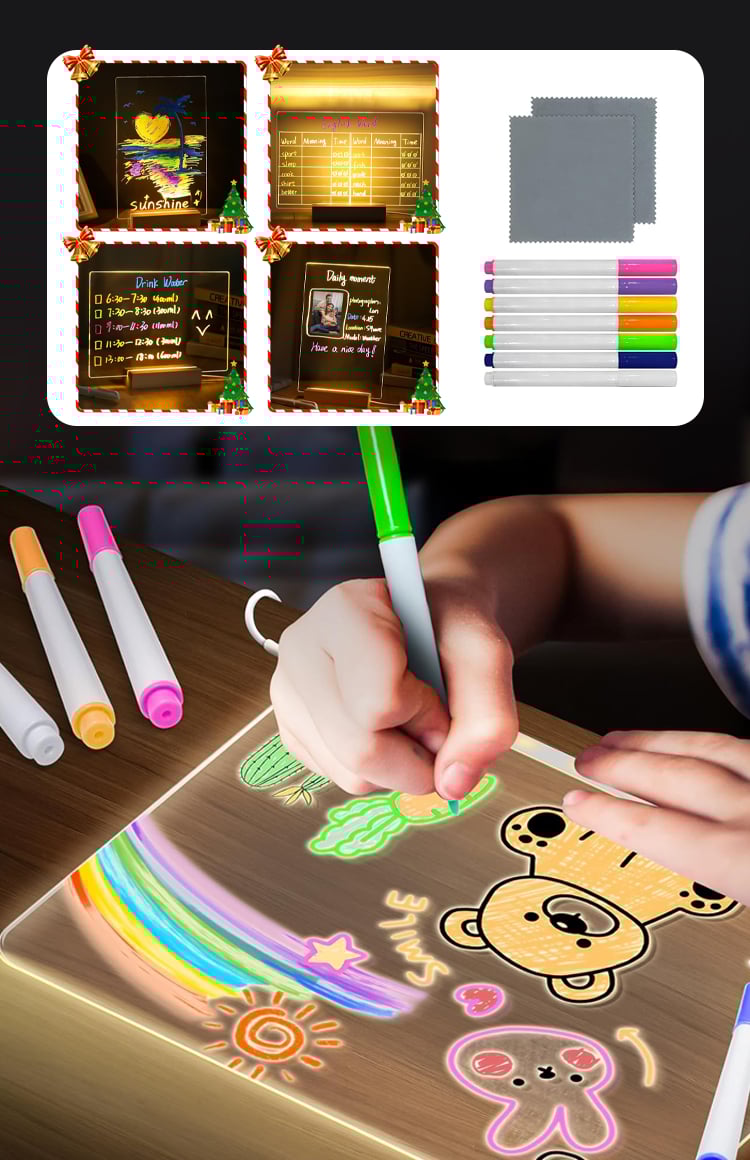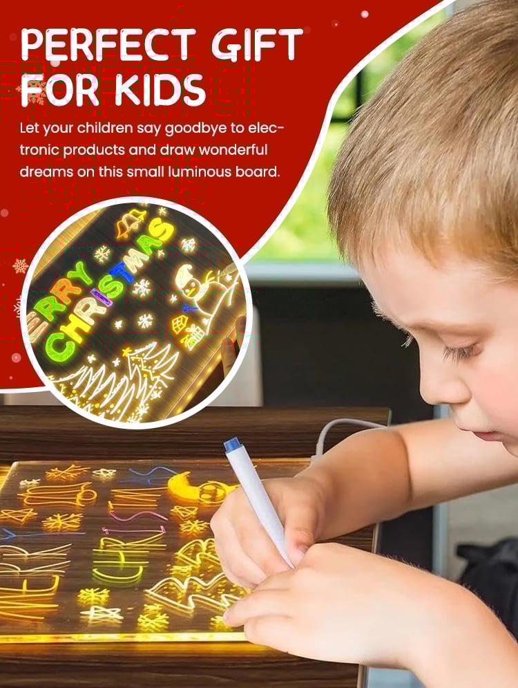 Such a fun and creative way to keep my kids entertained. The vibrant colors and glowing effect make their drawings come to life. It's durable and wipes clean effortlessly!