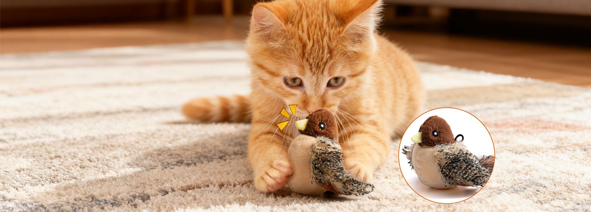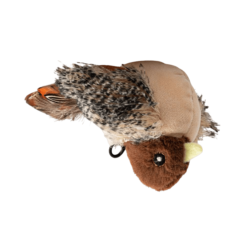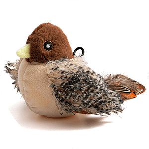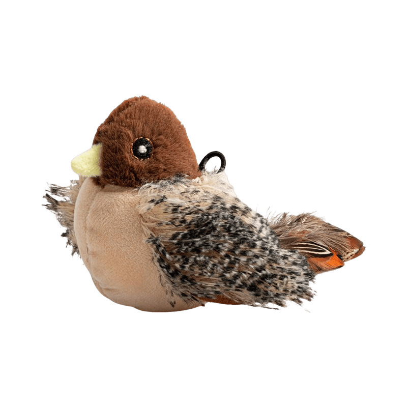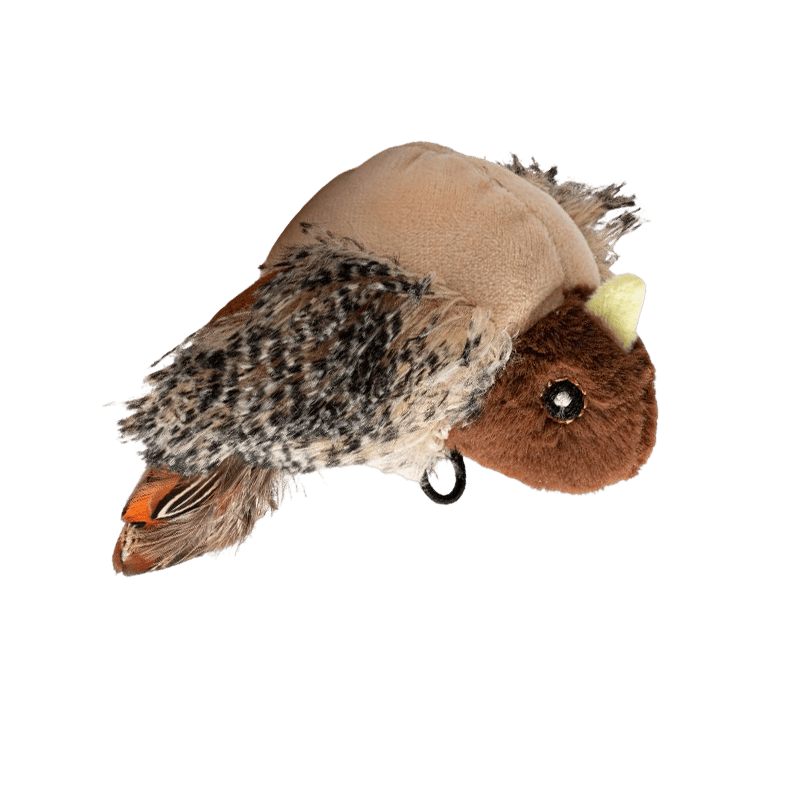 Mimics the shape, color, and texture of wild birds—visually and audibly irresistible to curious cats.