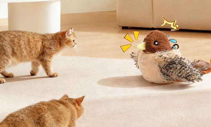 Tired of your cat sleeping all day? The Upgraded Chirping Bird triggers natural hunting instincts, turning couch potatoes into playful hunters.