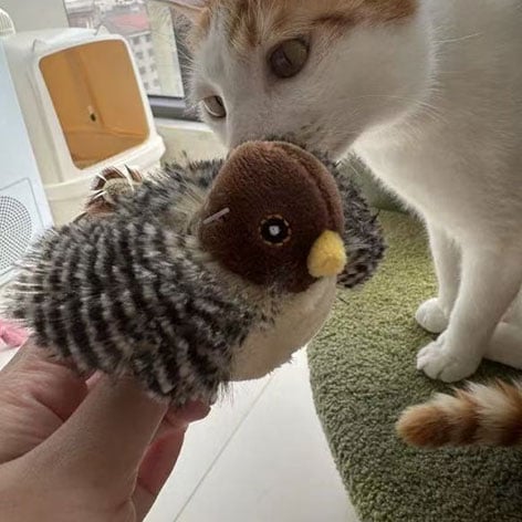 My cat used to sleep all day. Since getting this chirping bird, she’s playful, energetic, and even lost a bit of weight from all the running around. BEST PURCHASE EVER!