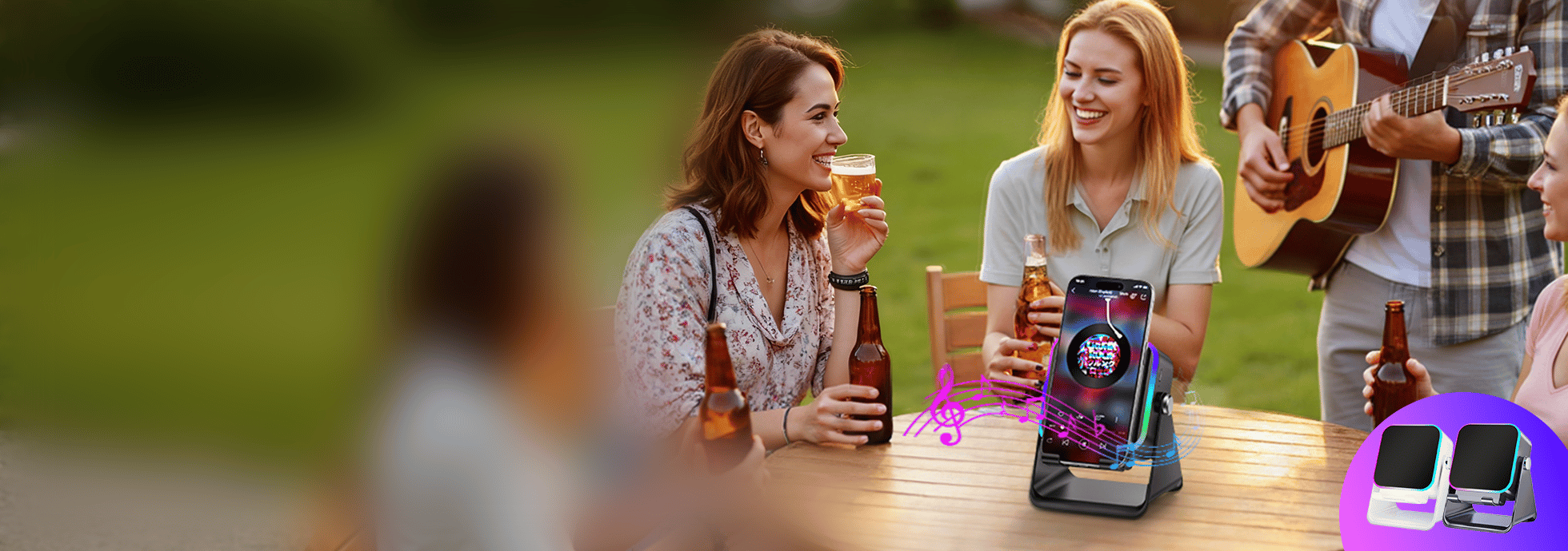 More than just a speaker, this all-in-one stand features 8 dynamic RGB light modes, a 360° rotatable stand, and a portable design for every occasion.