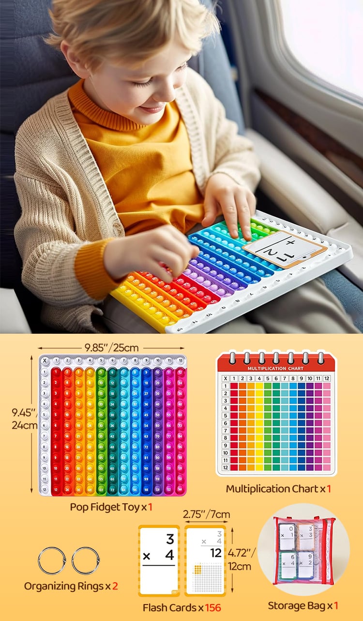 This Math Flash Cards combine the fun of pop fidget charts with essential math skills for kids aged 4-8.