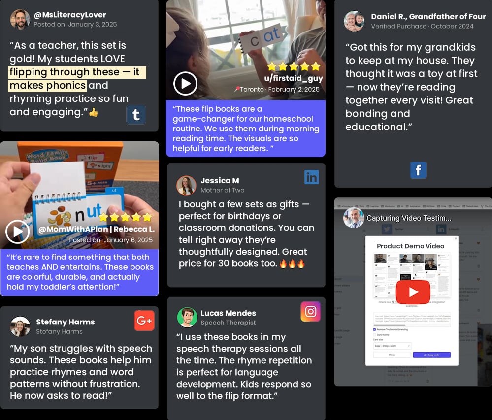 "I’ve tried countless reading resources, but these Books are a total game changer. My youngest used to struggle with rhyming, but now he eagerly flips through the books on his own. I’ve seen a big jump in his confidence and early reading skills!"