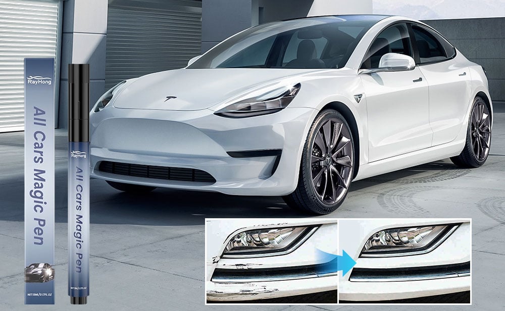 He came back with what looked like a regular pen. "Car Scratch Repair Pen," he said, tossing it to me. "It cost me very little online. I've used it on three different scratches on my truck, and you can't even tell where they were."