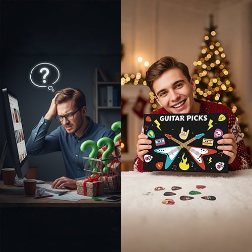 Try the Guitar Pick Advent Calendar — the ultimate solution for the “impossible-to-shop-for” music lover. Save time, skip the stress, and give something they’ll genuinely love and keep.