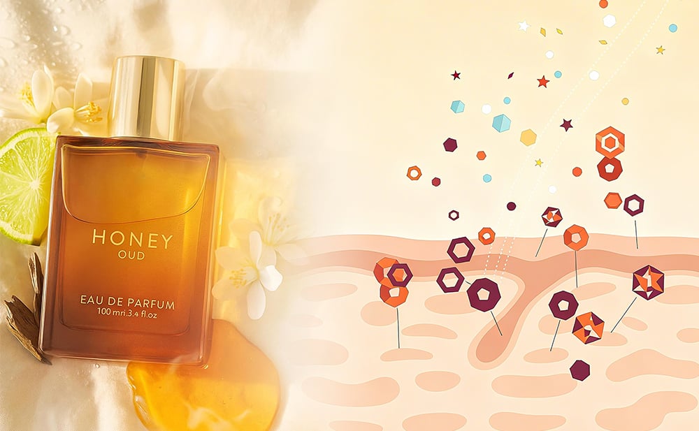 The secret is in the Agarwood (Oud) and Honey base notes. These aren't just fragrance ingredients – they're natural fixatives with heavy, tenacious molecules that literally anchor lighter notes like Bergamot to your skin.
