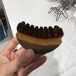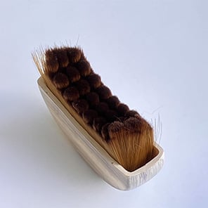 It's important to keep your brush clean. To wash it, simply use warm water and a mild soap. Gently scrub the bristles with your fingers, rinse thoroughly, and then let it air dry completely with the bristles facing down to prevent moisture from pooling.