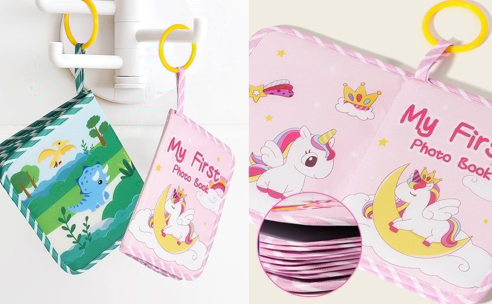 You can insert standard 4x6 inch photos of family, friends, pets, or anything you want your baby to see! The book features clear, baby-friendly photo sleeves that make it easy to slide pictures in and out, allowing you to update the content as your baby grows or their interests change.