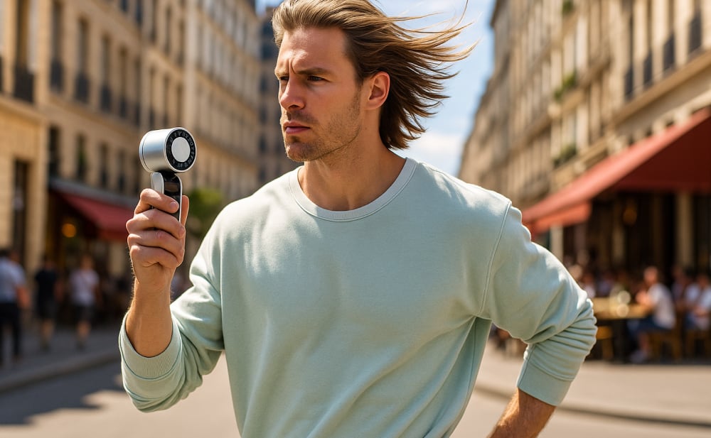 It's like having a mini jet engine in your hand. But unlike bulky fans, this one weighs just a few ounces and fits comfortably in your palm.