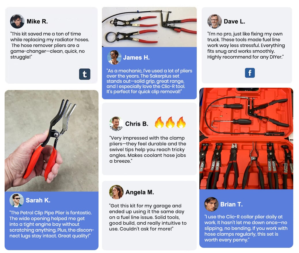 "These pliers are a game-changer. I've been a weekend mechanic for 15 years and wish I'd discovered these sooner. No more bloody knuckles or stripped clamps. The hose removal plier alone is worth the price of the entire kit."
