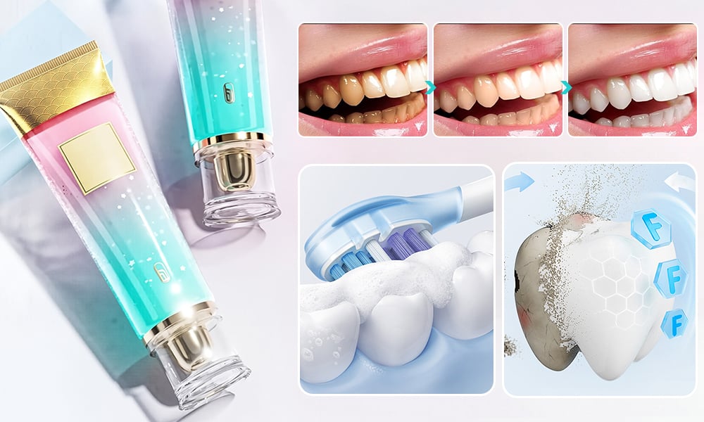 Stain Removal: Targets tough stains caused by food, coffee, and smoking, restoring natural whiteness.