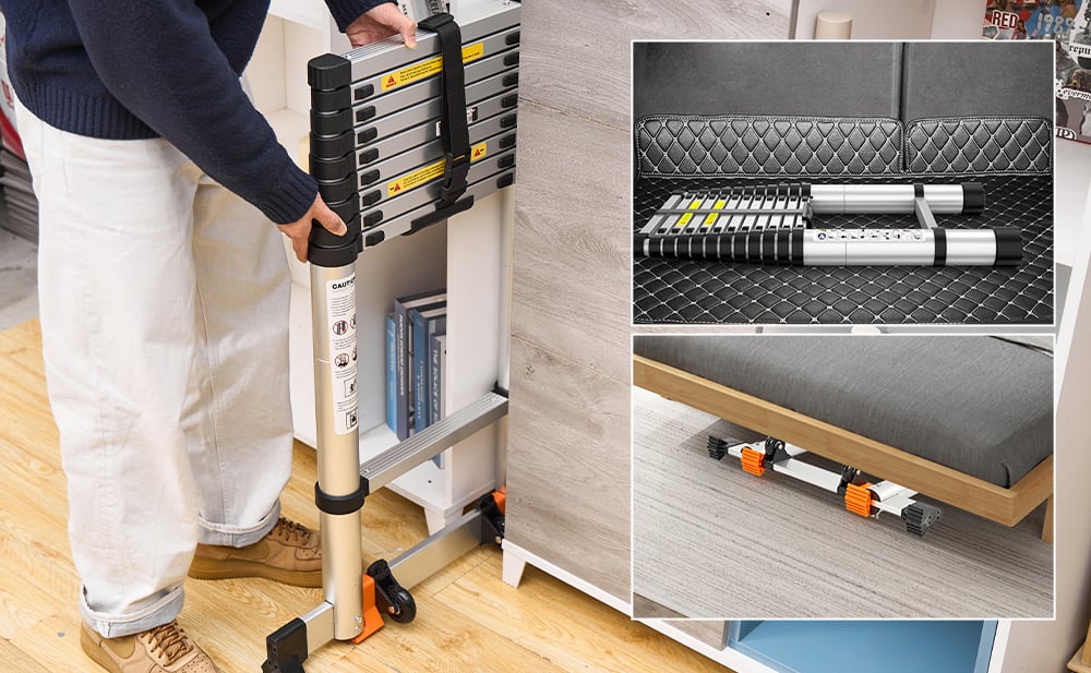 A: The Telescoping Ladder is designed to be space-saving. It folds down to a compact size, making it easy to store in small spaces like closets, under the bed, or even in your car trunk.