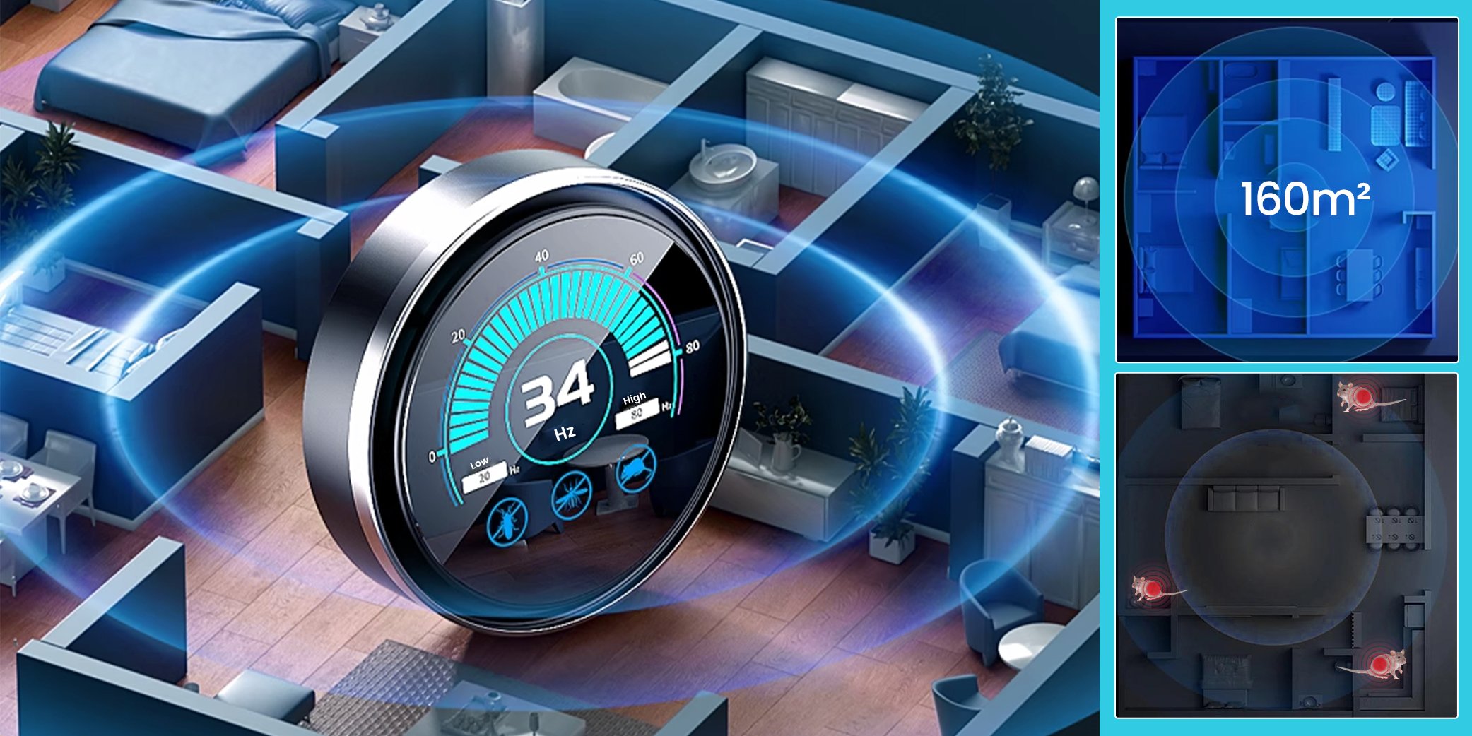 A built-in intelligent AI chip distinguishes between the neural pathways of different pests. It customizes the output to effectively repel mosquitoes, cockroaches, mice, bats, flies, and more with unparalleled accuracy.