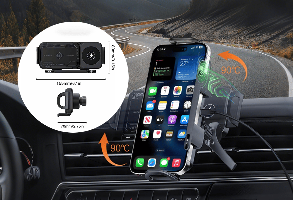 A tech startup has announced a breakthrough car mount that combines proprietary sensor technology with dual-coil 15W fast charging and motorized rotation to permanently solve the "Compromise Conflict" that has plagued drivers for decades.