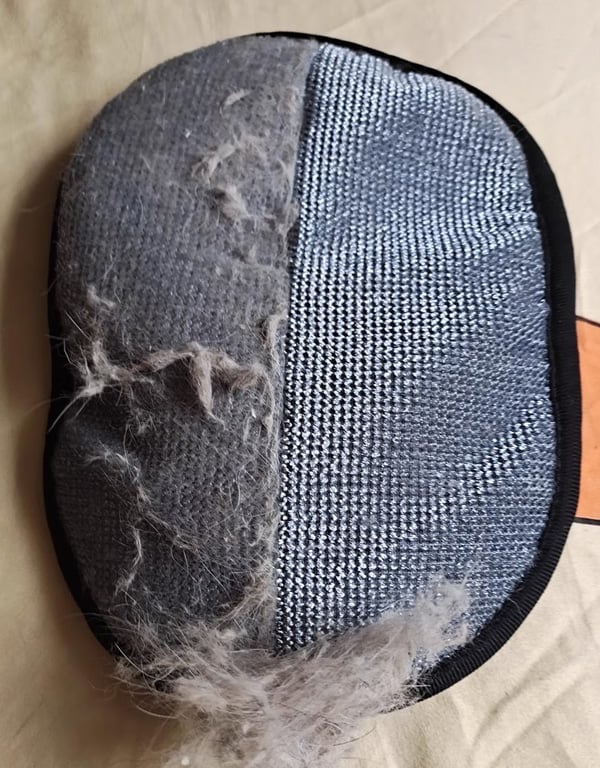 This is a nice, lightweight pet hair remover. It's easy to use and fits over my hand nicely. It does a good job of getting loose dog fur off of clothes and furniture. Seems well made, too.