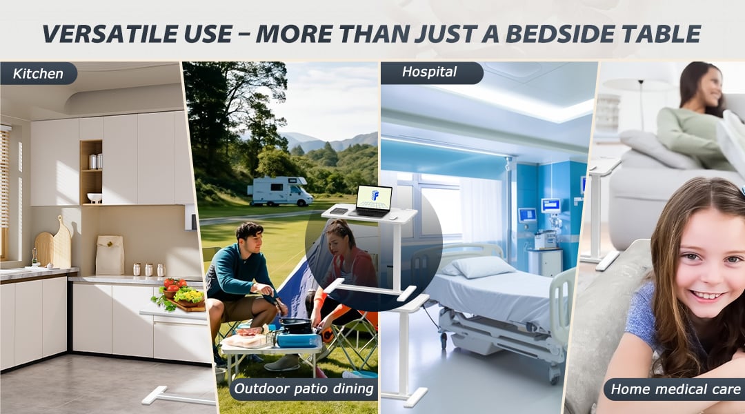 This overbed bedside table is a game-changer! The hidden casters make it incredibly easy to move around, and the adjustable height is perfect for any bed. It's sturdy, stylish, and functional – everything you need in a bedside table. Highly recommended!