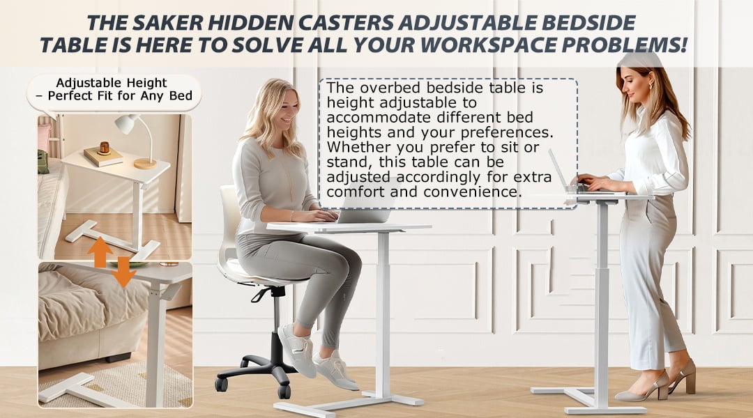 Absolutely! The SAKER table offers adjustable height settings, making it versatile for different bed heights or even as a sofa-side table.