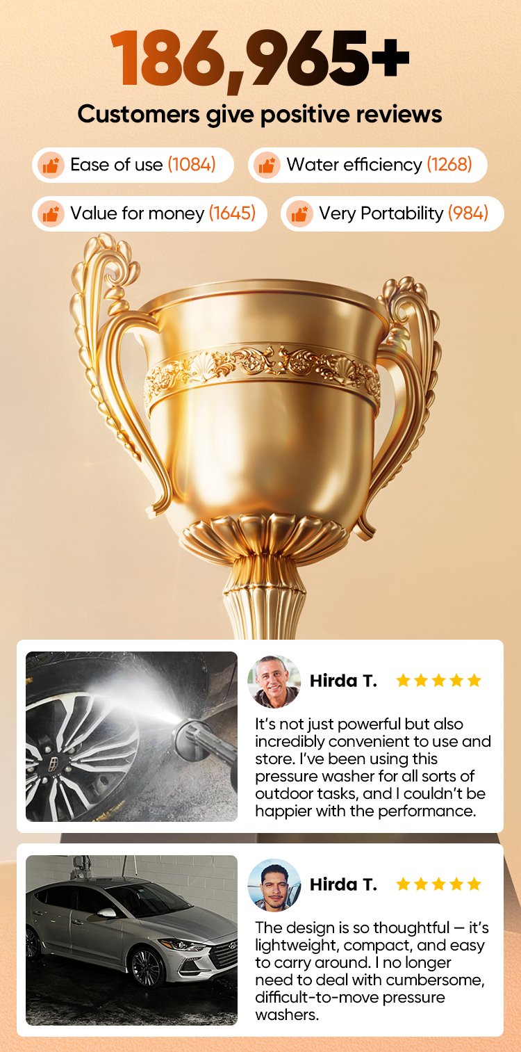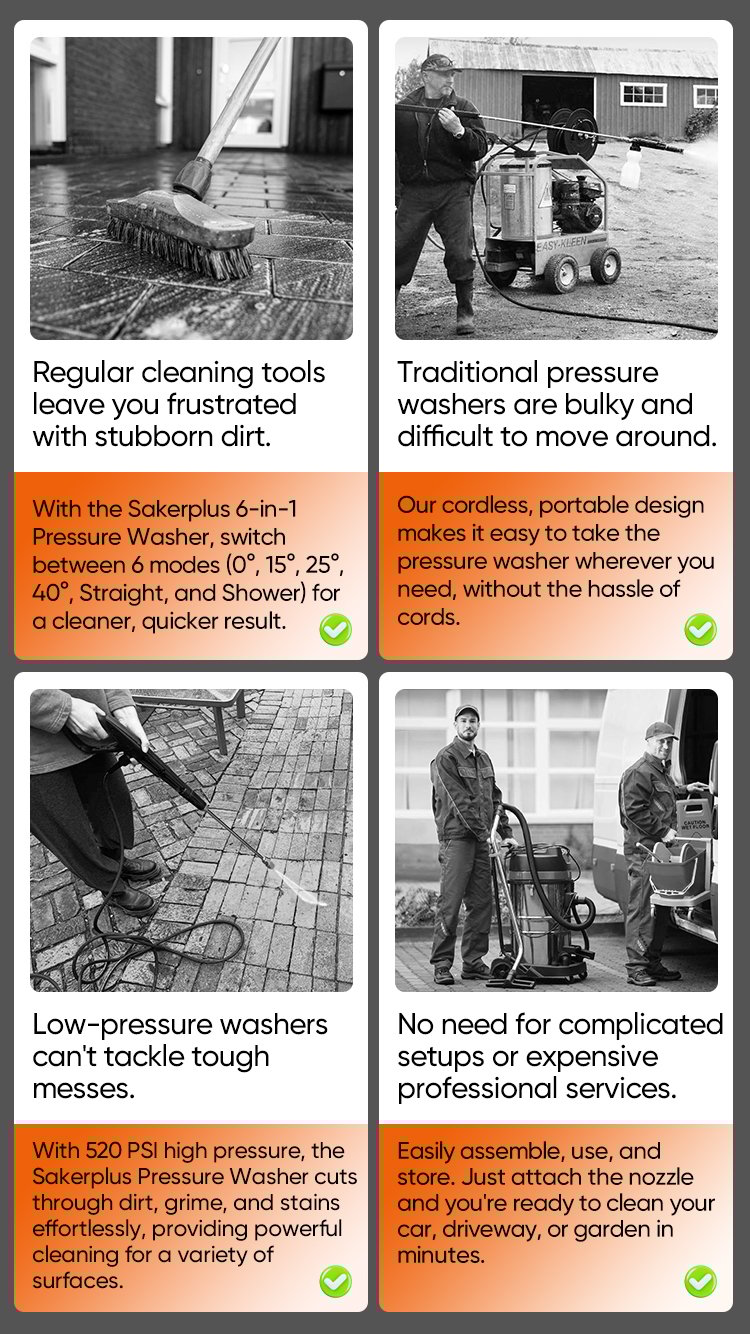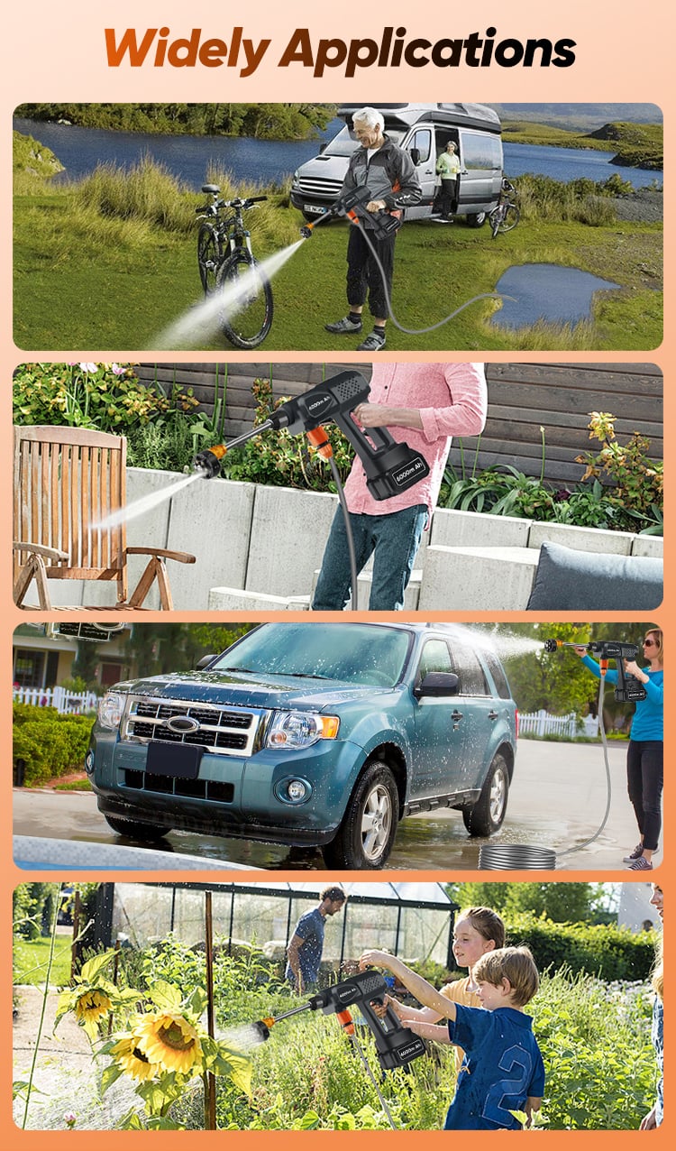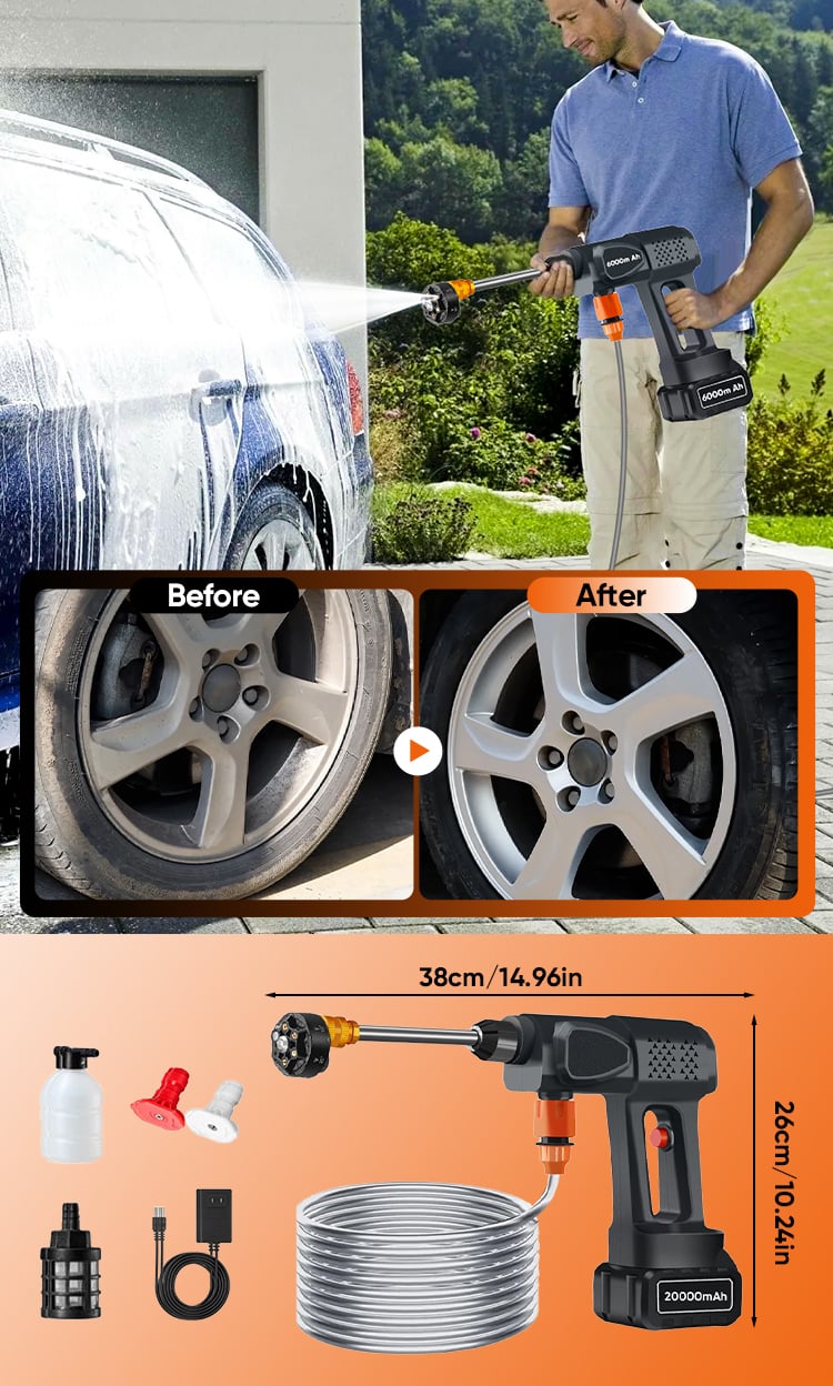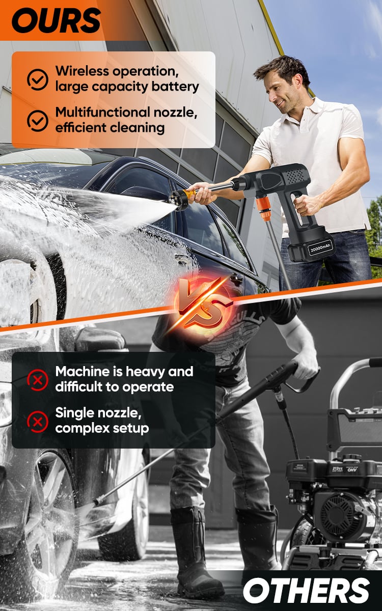 The Portable Pressure Washer is designed with user-friendly controls, making it easy for beginners to start cleaning right away, while offering the performance and durability that professionals demand. Whether you're tackling light cleaning or tougher grime, it ensures spotless results every time.