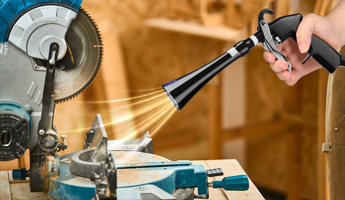 Blast away sawdust, grease, and grime from tools, workbenches, and hard-to-reach areas with precision.