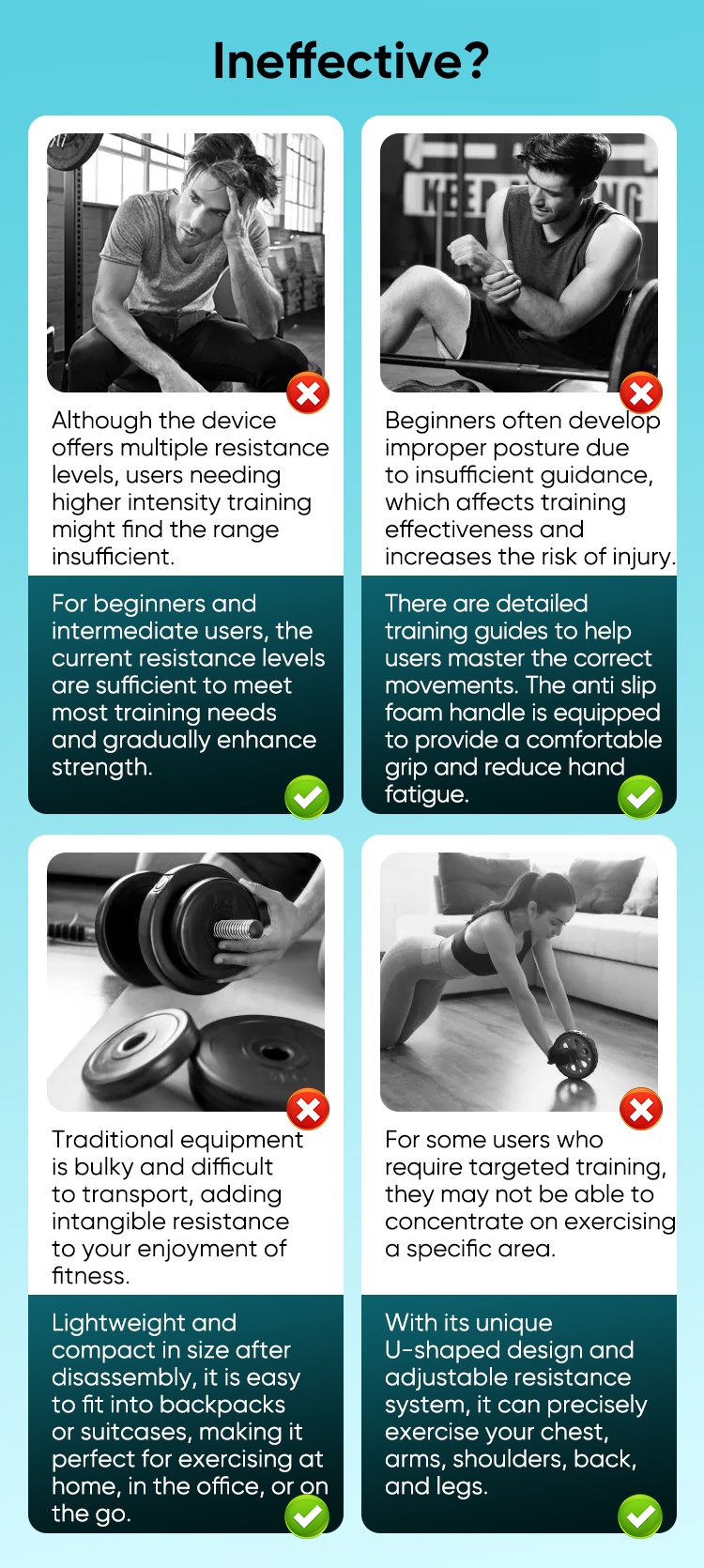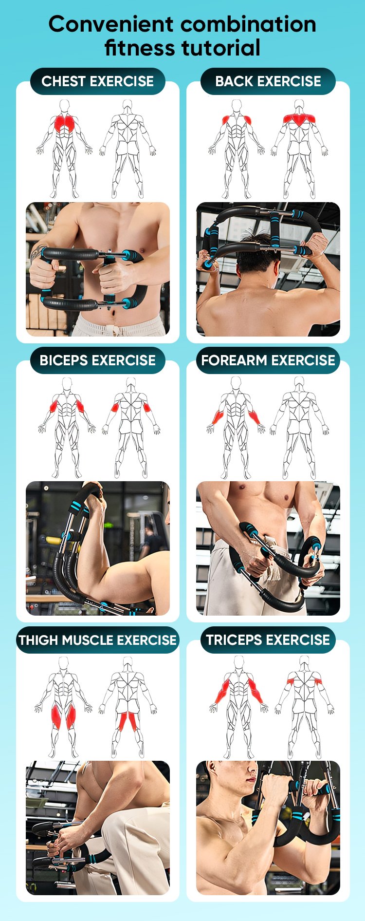 This muscle training bars is different from a traditional arm workout bar in that it stimulates more muscle groups, including chest exercises, wrist exercises, arms, back, legs, and shoulders.