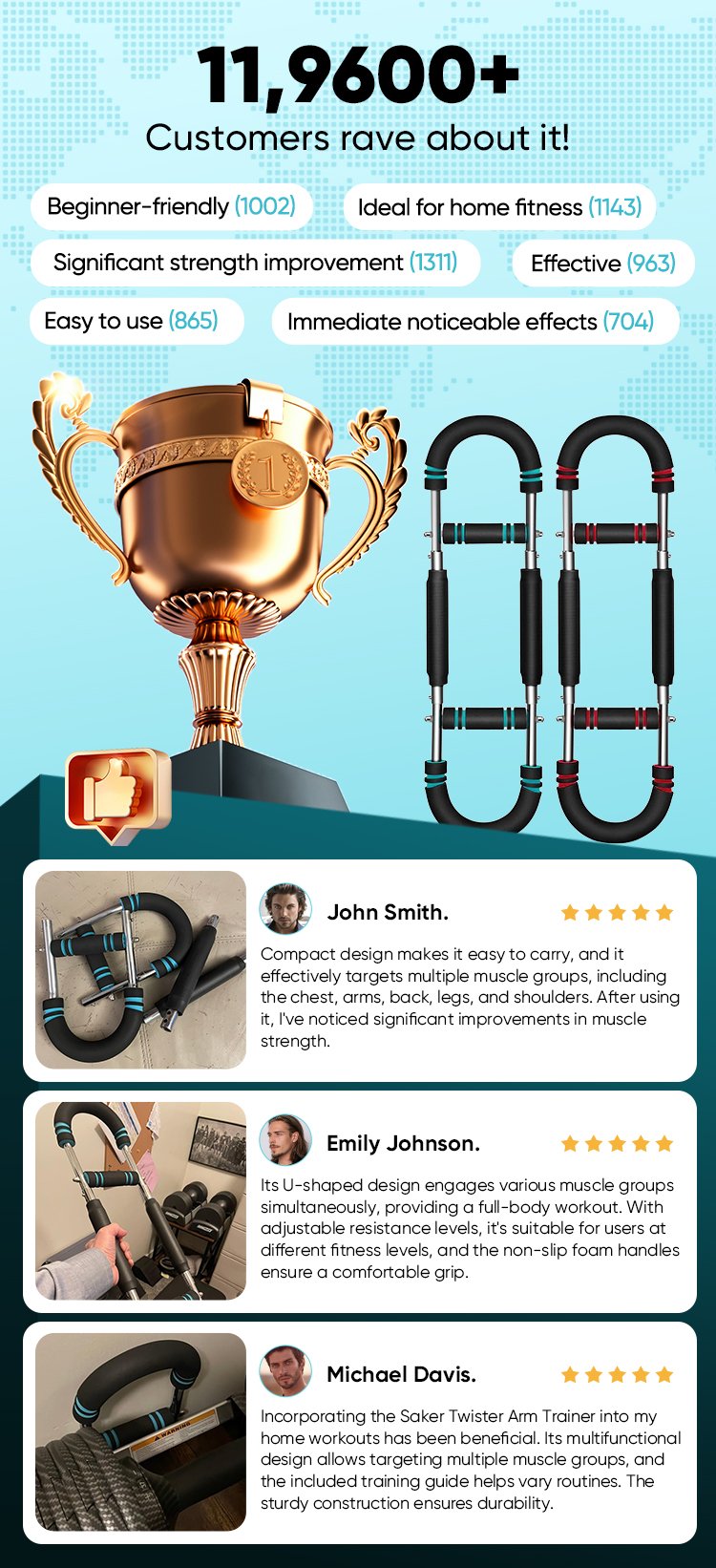 The Saker® Twister Arm Trainer is suitable for all fitness levels, from beginners to experienced athletes. Whether you're looking to improve your workout results or avoid posture mistakes, this trainer will help.