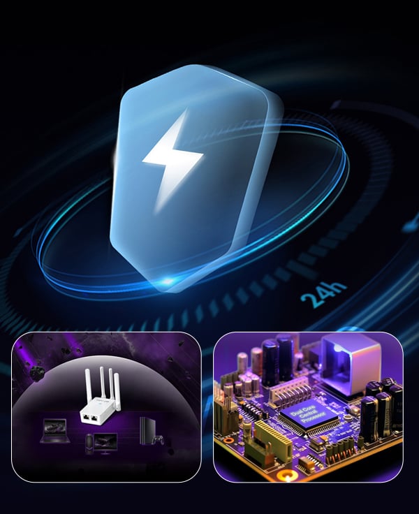 Say goodbye to dead zones! Our extender boosts your WiFi 10-15m further, punching through walls and floors to reach every room—even your garage, porch, and backyard.