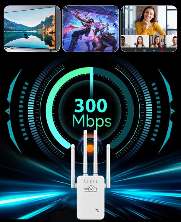 A: Absolutely! The Wi-Fi extender offers ultra-fast speeds of up to 300 Mbps, making it perfect for activities like streaming 4K content, online gaming, and video calls. You won’t experience buffering or lag, even with high-demand media.