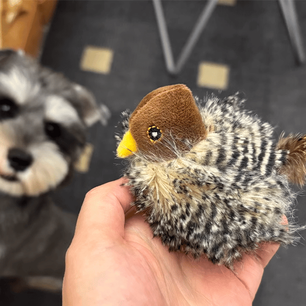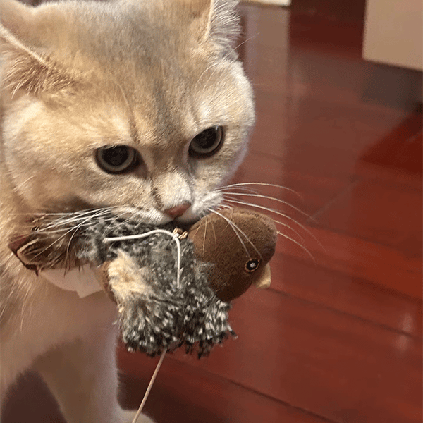 This was bought for an energetic kitten. It doesn't play with this toy in the same way. When it hears a “chirp” call, it starts meowing and purring more than usual. He likes to grab it and watch it flip around, and he likes to kick it, just like he does with the fish. However, it prefers to chew on this toy.
